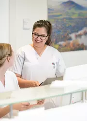 - Enge Teamarbeit sowie interdisziplinäre, zielorientierte Zusammenarbeit mit allen medizinisch- therapeutischen Bereichen